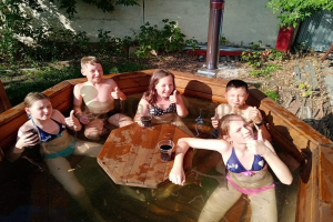 На даче стоит у нас такой чан, купаемся семьей из 2 взрослых и двое детей. Места хватает, цена адекватная. Брали из-за детей, т.к. бассейн не поставишь в Сибири особо, вечно в нем холодно, а тут воду всегда можно согреть костром)). Дешево и сердито, как говорится!
