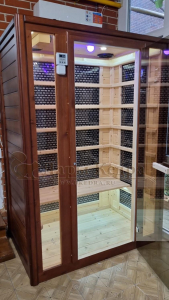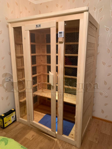 Это специально оборудованная кабина из липы для прогрева тела человека сухим теплом. Воздух в таких парных не нагревается. Инфракрасные лучи воздействуют на тело, равномерно прогревая мышцы, суставы и органы. Карбоновые излучатели, встроенные в стены кабины, обладают мягким прогревом, что полностью исключает возможность ожога. Работает кабина за счет электричества. Двухместная инфракрасная сауна с карбоновыми излучателями подойдет как для домашнего использования, так и для коммерции.