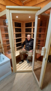 Двухместная угловая инфракрасная сауна кабина из кедра с карбоновыми излучателями