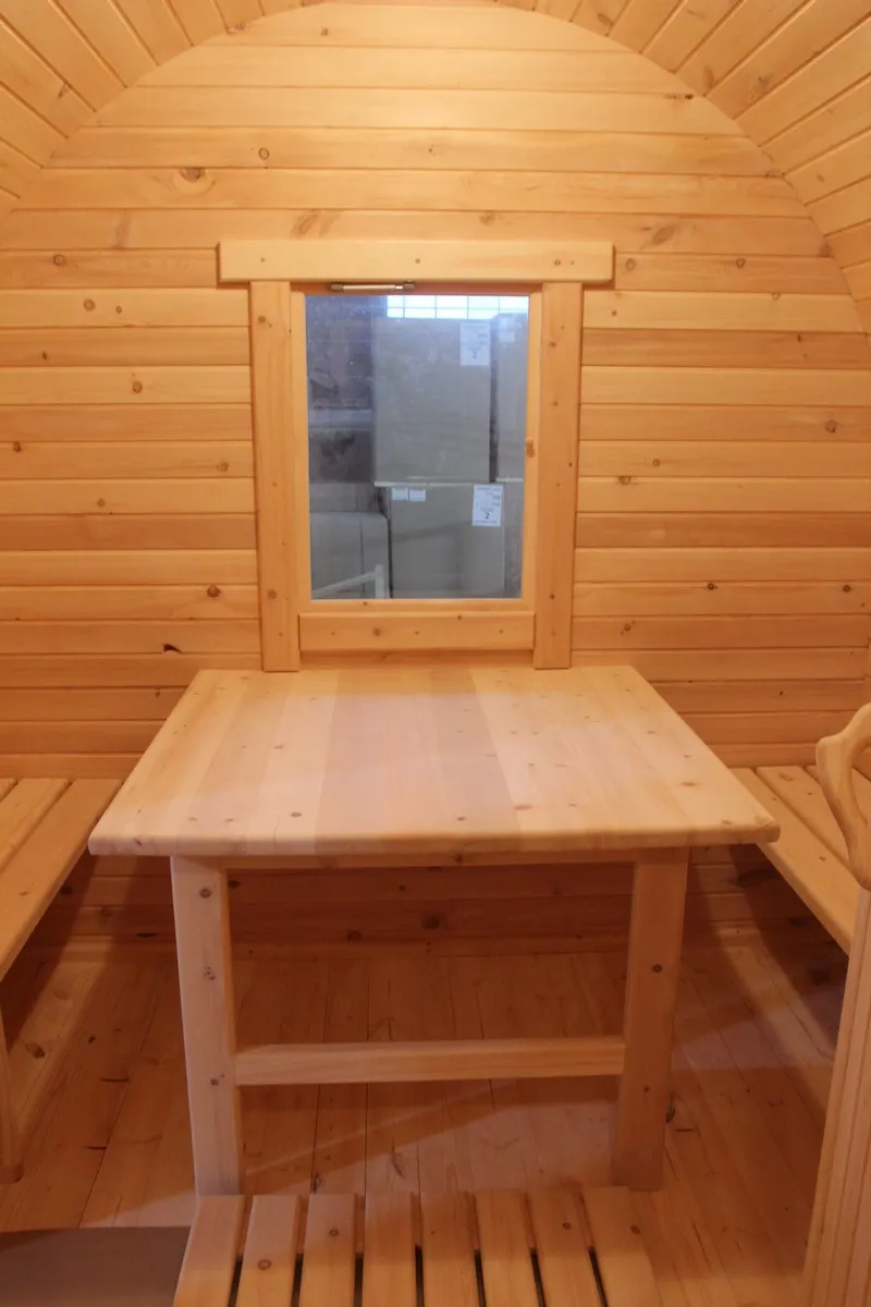 Компактный однокомнатный домик подойдет для дачного использования в теплое время года или обустройства загородных баз отдыха. Домик оборудован двумя лежаками из кедра, между которыми пользования можно поставить откидной столик. Для удобства пользования кемпинг дом можно укомплектовать верандой с лавочками или козырьком.