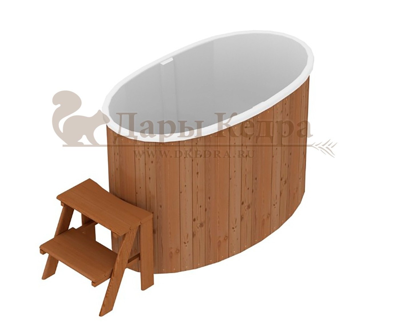 • Овальная композитная купель «НОТА 98» Это купель с внутренней овальной чашей, которая изготовлена из современного прочного и термоустойчивого материала (композита). Форма чаши обеспечивает комфортную посадку внутри изделия. Для удобного использования купель оснащена приставной лестницей. Обручи из нержавеющей стали декорируют купель с композитом и равномерно распределяют нагрузку во время процедур. Подходит для установки в помещении и на открытом воздухе. При уличном использовании, рекомендуется дополнительно оборудовать купель водогрейной твердотопливной печью. Композитная вставка облегчает уход за изделием и увеличивает срок службы купели.