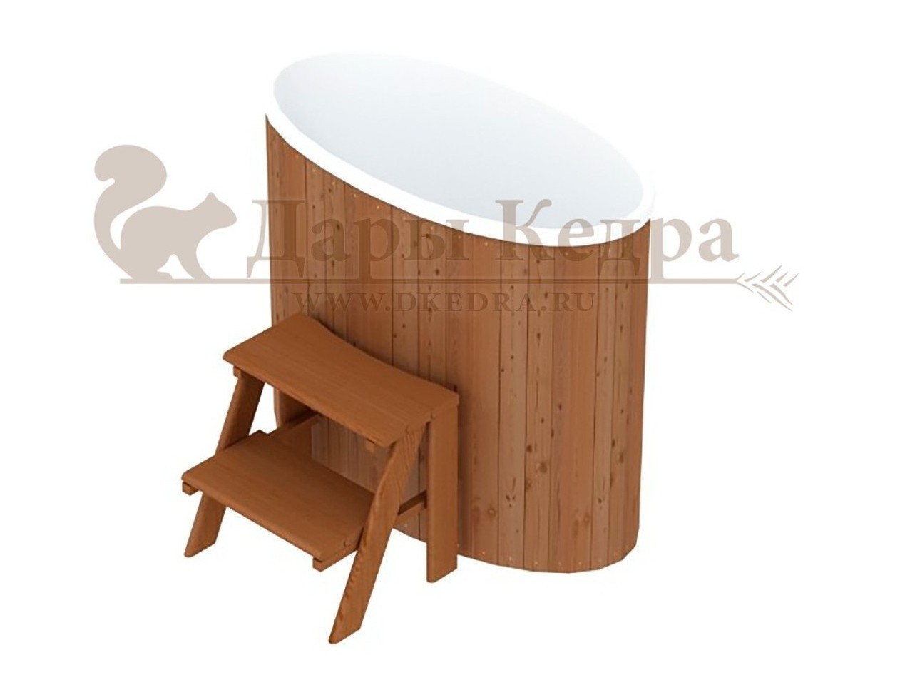 • Овальная композитная купель «НОТА 79» Это купель с внутренней овальной чашей, которая изготовлена из современного прочного и термоустойчивого материала (композита). Форма чаши обеспечивает комфортную посадку внутри изделия. Для удобного использования купель оснащена приставной лестницей. Обручи из нержавеющей стали декорируют купель с композитом и равномерно распределяют нагрузку во время процедур. Подходит для установки в помещении и на открытом воздухе. При уличном использовании, рекомендуется дополнительно оборудовать купель водогрейной твердотопливной печью. Композитная вставка облегчает уход за изделием и увеличивает срок службы купели.