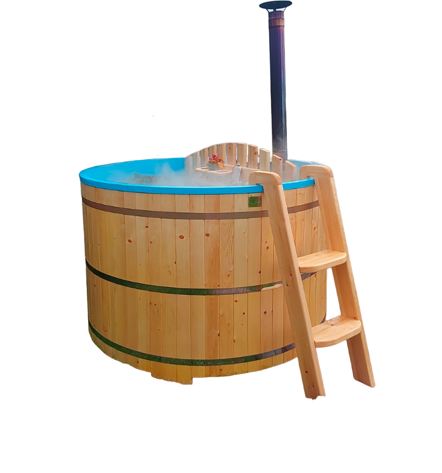 Фурако круглая из кедра с литой термопластиковой вставкой с внешней печью Это уличная подогреваемая купель с круглой внутренней чашей из термопластика, которая имеет цельную форму вместе с сиденьями и дном. Для удобства пользования купель фурако оборудована приставной лестницей. Подогрев воды осуществляется за счет внешней печи с дымоходом. Термопластик устойчив к воздействию температур, облегчает уход за фурако и увеличивает срок ее службы. Парение на свежем воздухе – это отличный способ укрепить здоровье и поддержать организм в тонусе.