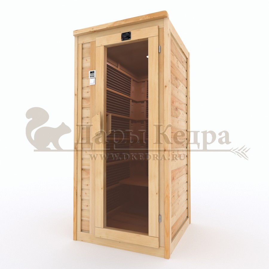 Одноместная инфракрасная сауна кабина из кедра и липы с керамическими нагревателями Это специально оборудованная кабина из липы для прогрева тела человека сухим теплом. Воздух в таких парных не нагревается. Инфракрасные лучи воздействуют на тело, равномерно прогревая мышцы, суставы и органы. Керамические излучатели похожи на лампы, имеют высокую температуру нагрева, поэтому защищены противоожоговыми решетками. Тело человека в таких саунах нагревается интенсивнее. Работает кабина за счет электричества. Компактная одноместная инфракрасная сауна с керамическими излучателями подойдет как для домашнего использования, так и для коммерции. Обращаем Ваше внимание, что в стандартную комплектацию входит трапик для ног, но вы можете его заменить на цельный пол совершенно бесплатно!