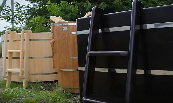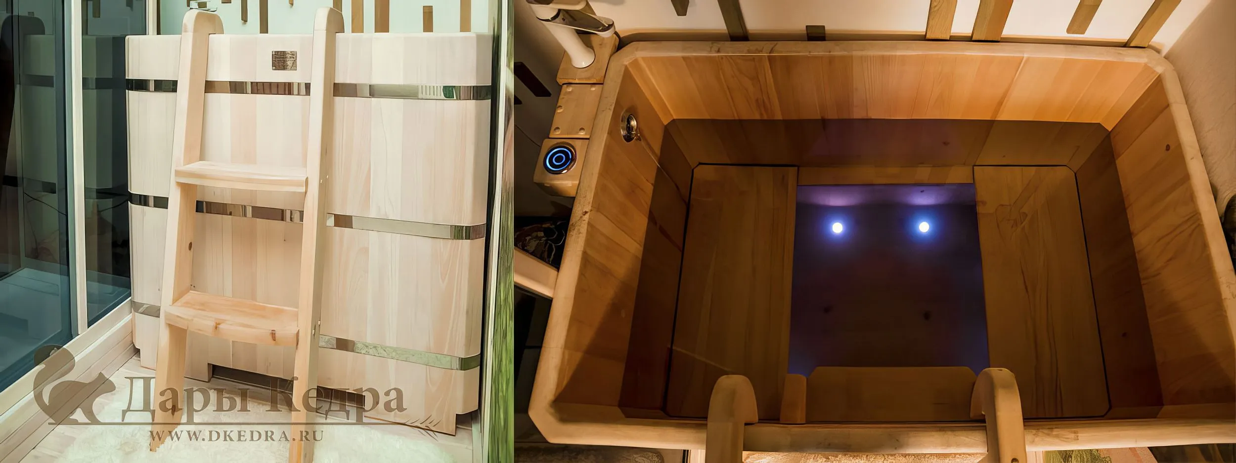 Деревянная ванна из кедра с перепадом высоты